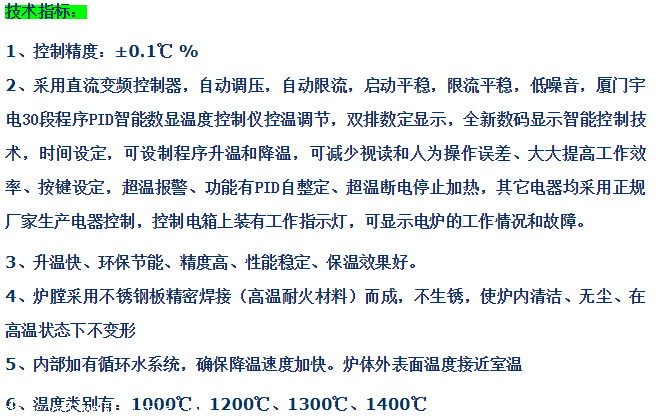 真空环境下的加热设备。在金属罩或石英玻璃罩密封的炉膛内,用管道与高真空泵系统连结。炉内真空度可达133×(10-2〜10-4)Pa。炉内加热系统可通过电阻炉丝(如钨丝)或高频感应加热直接加热。*高温可达3000℃左右。主要用以陶瓷烧成,真空冶炼,电真空零件脱气,退火,金属零件的钎焊和陶瓷金属密封等